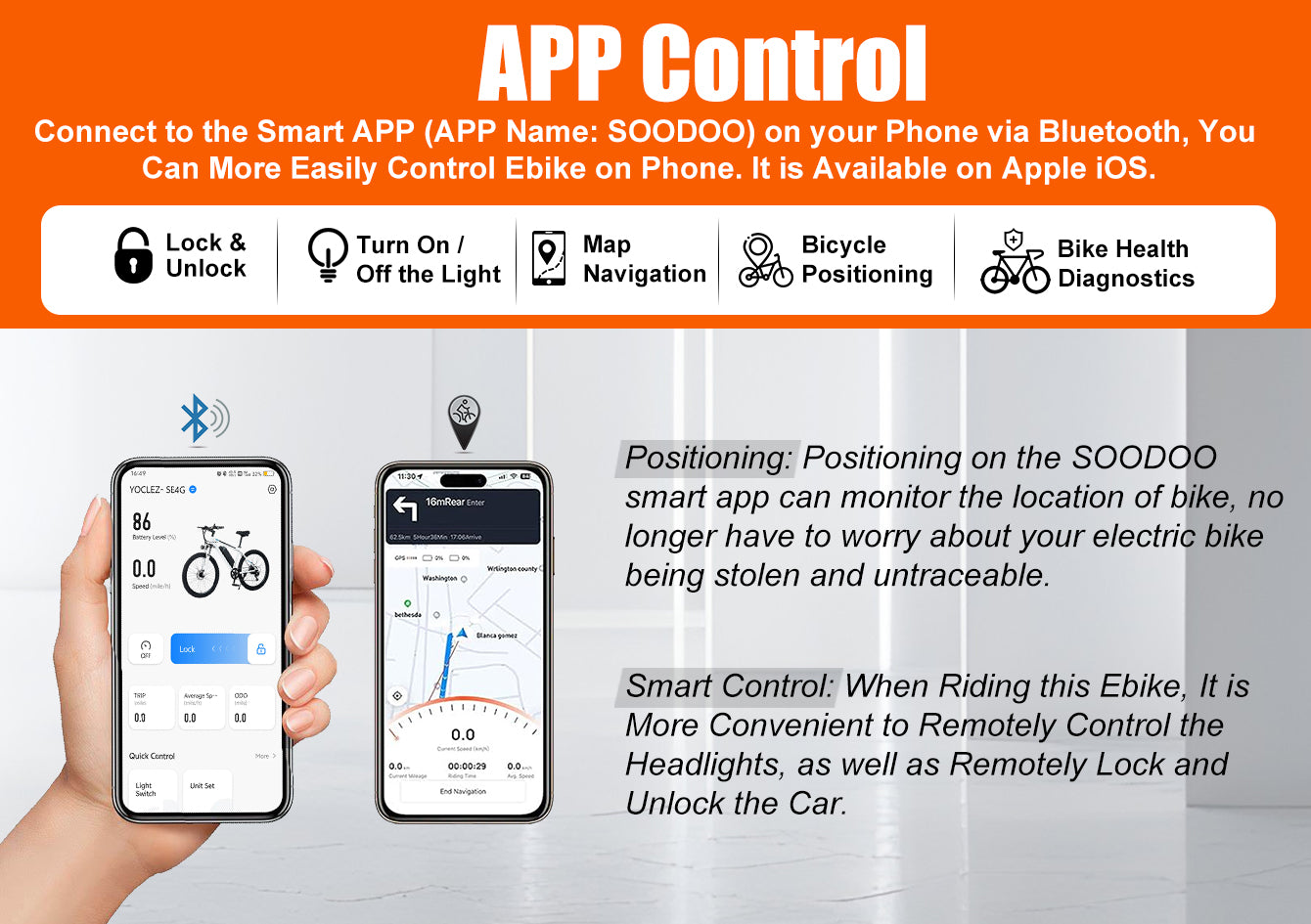 Yes, Our YOCLES 2602 ebike supports both, you could remotely control the ebike by the APP, and the best features are positioning and bike health check.