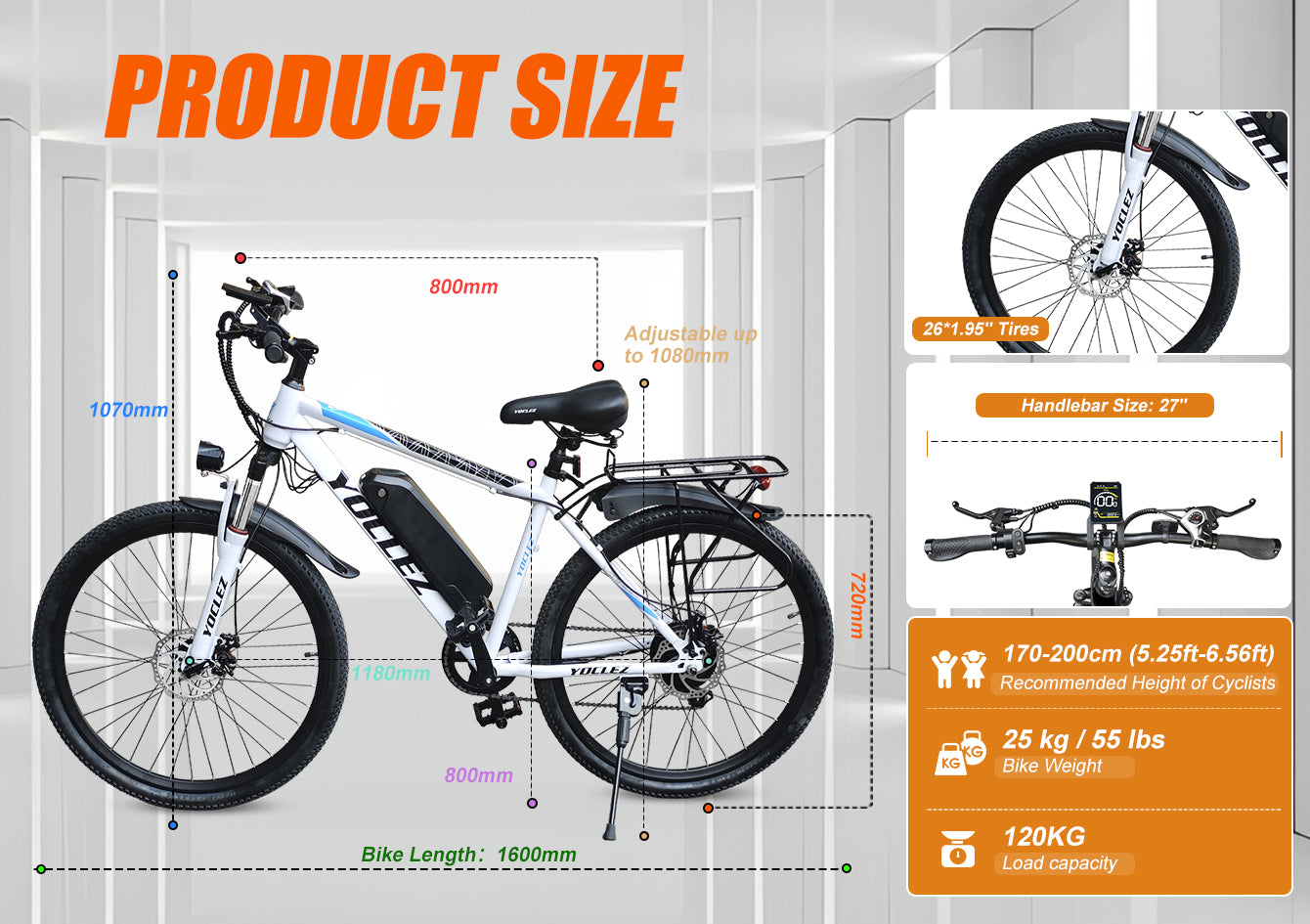 ◆Recommended Height of Cyclists:160-200cm (5.25ft-6.56ft)