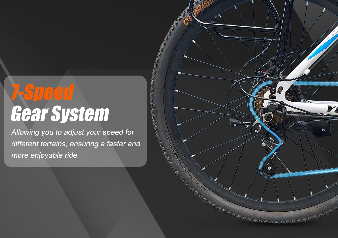 ◆Speed Levels: 5 Speed Levels(12, 16, 20, 23 and 25 km/h)